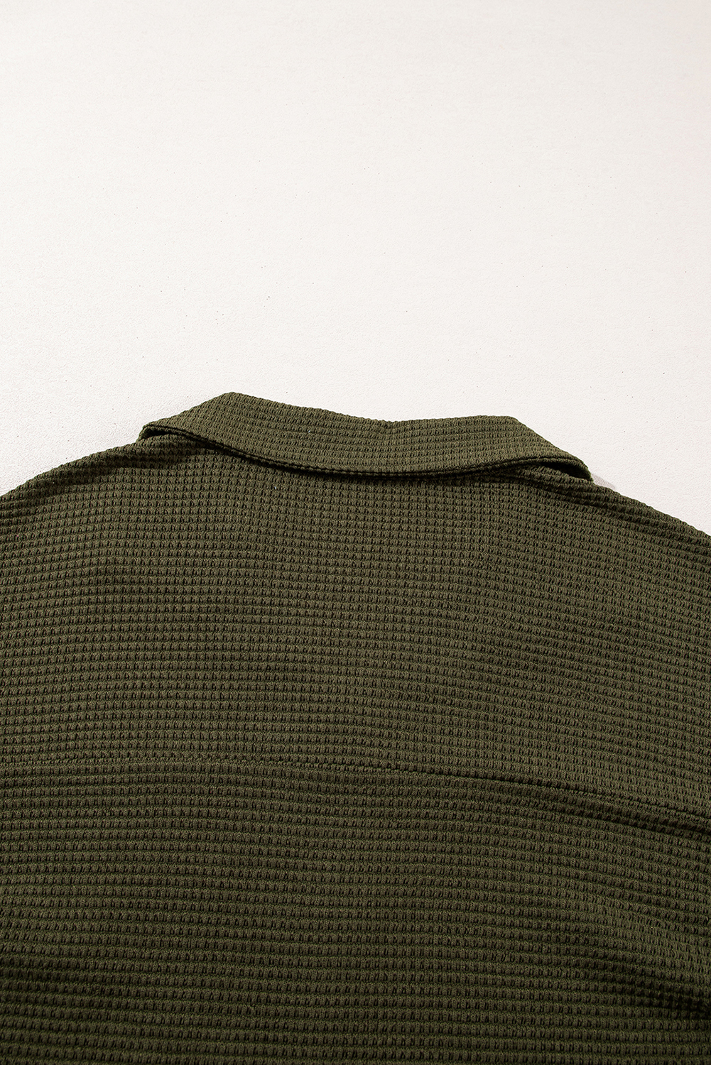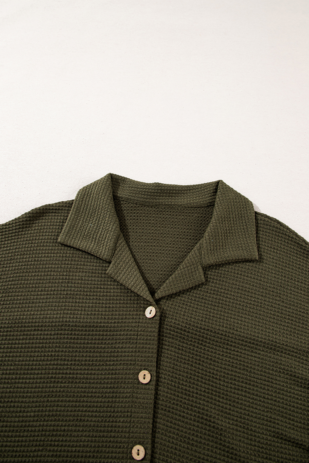 Four Leaf Clover Solid Color Textured Buttoned Shirt and Casual Pants Set