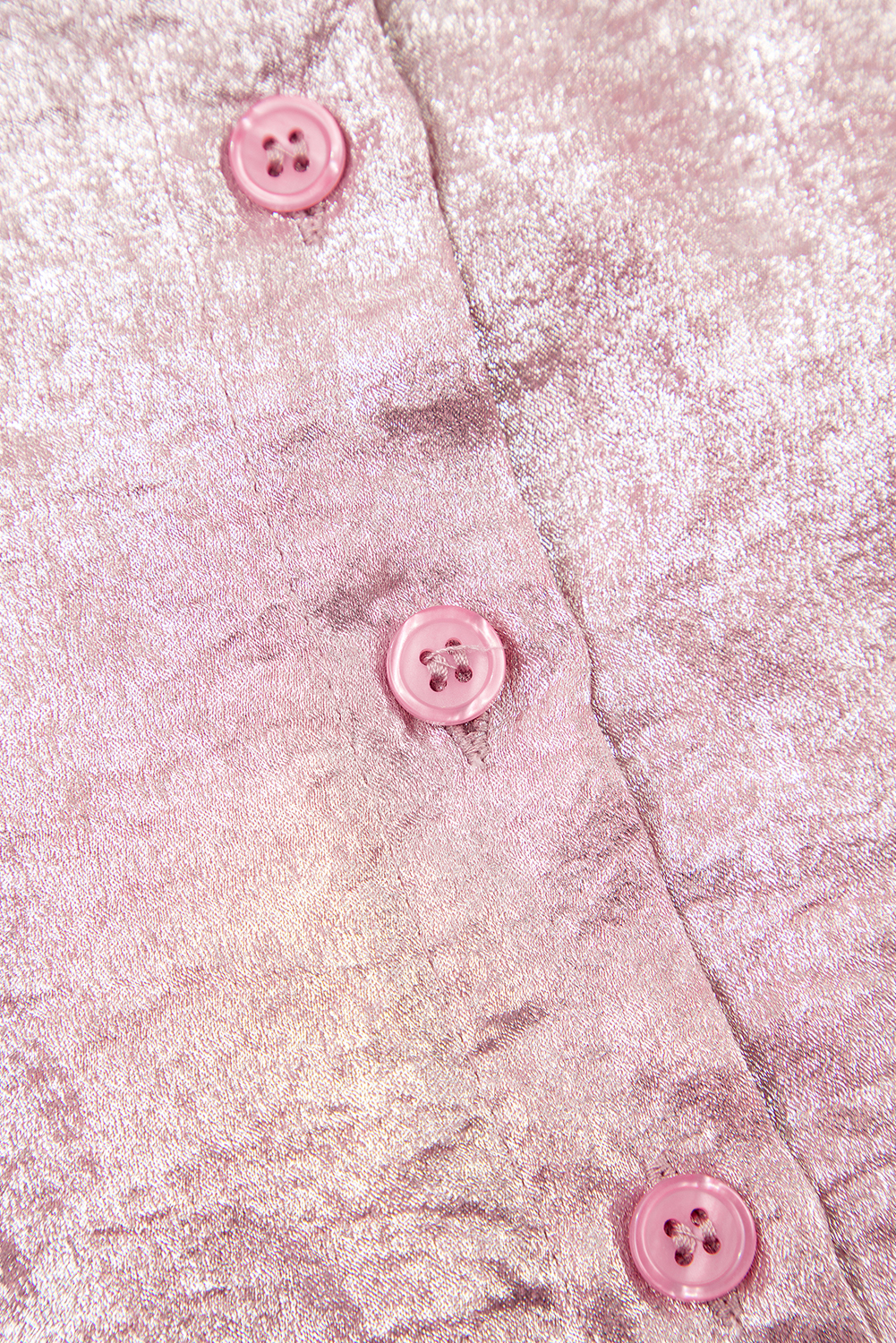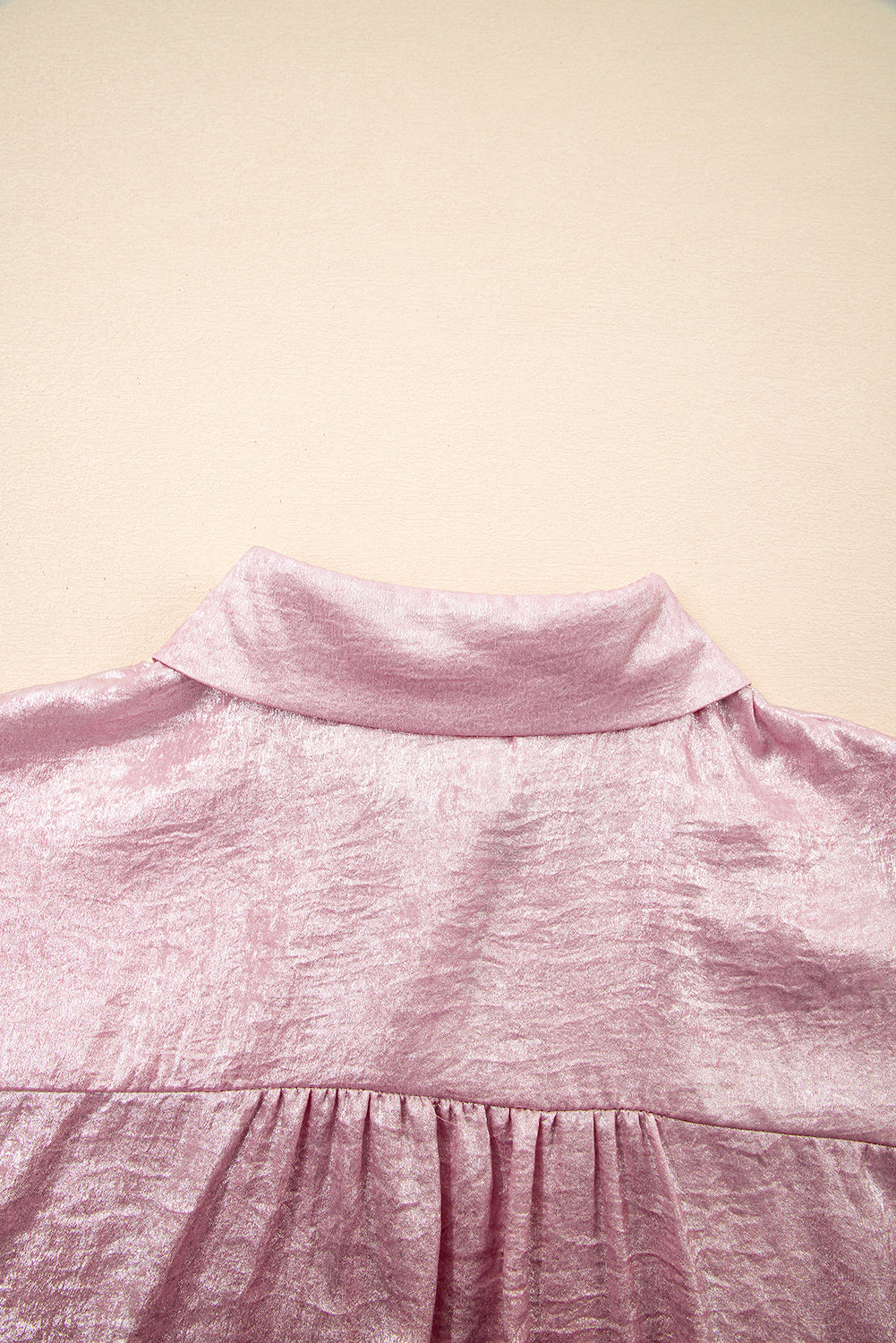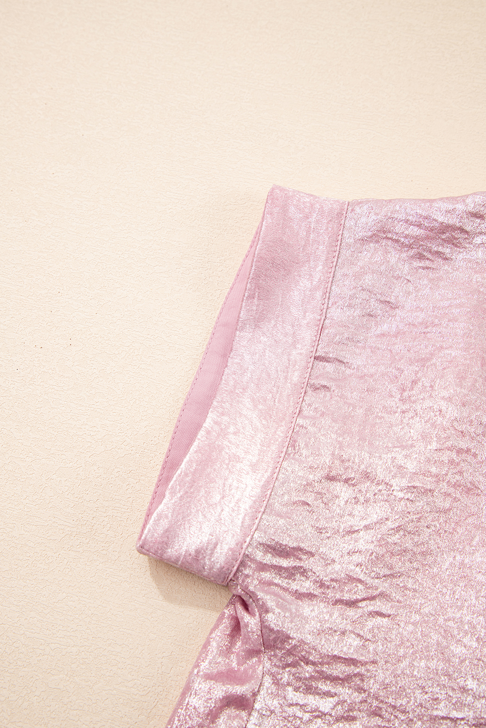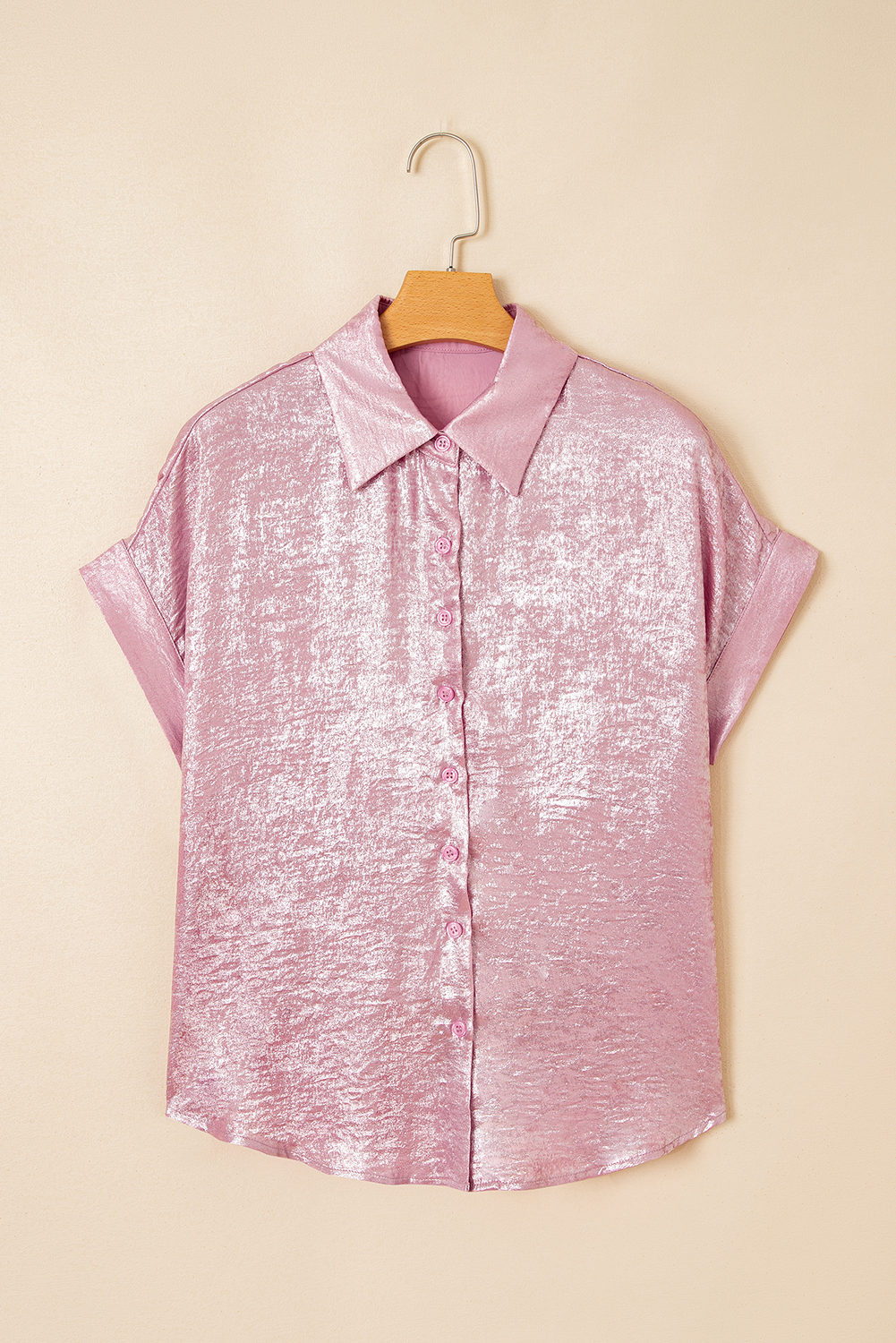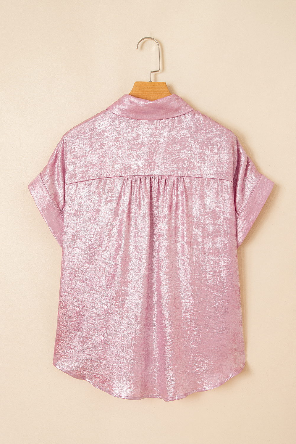 - Stylish metallic sheen adds a touch of glamour to this short sleeve shirt.
